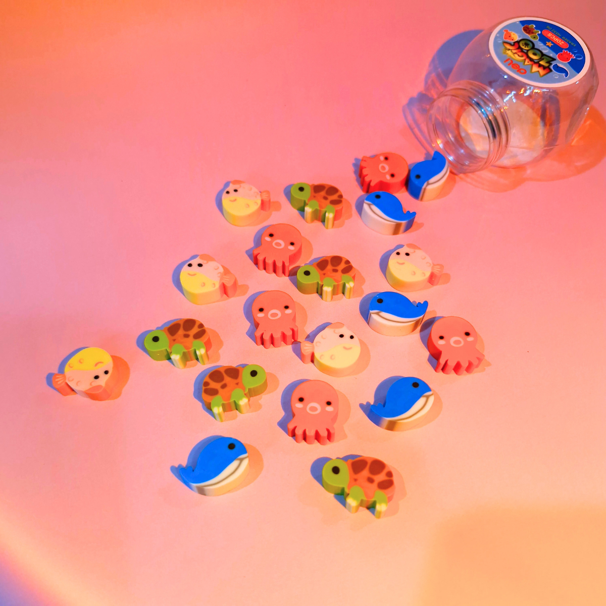 Cada borrachinha vem com um bichinho marinho diferente – uma surpresa adorável a cada escolha!